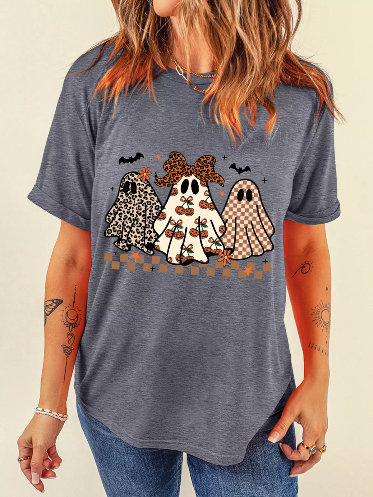 Halloween Ghost Round Neck Casual Tee