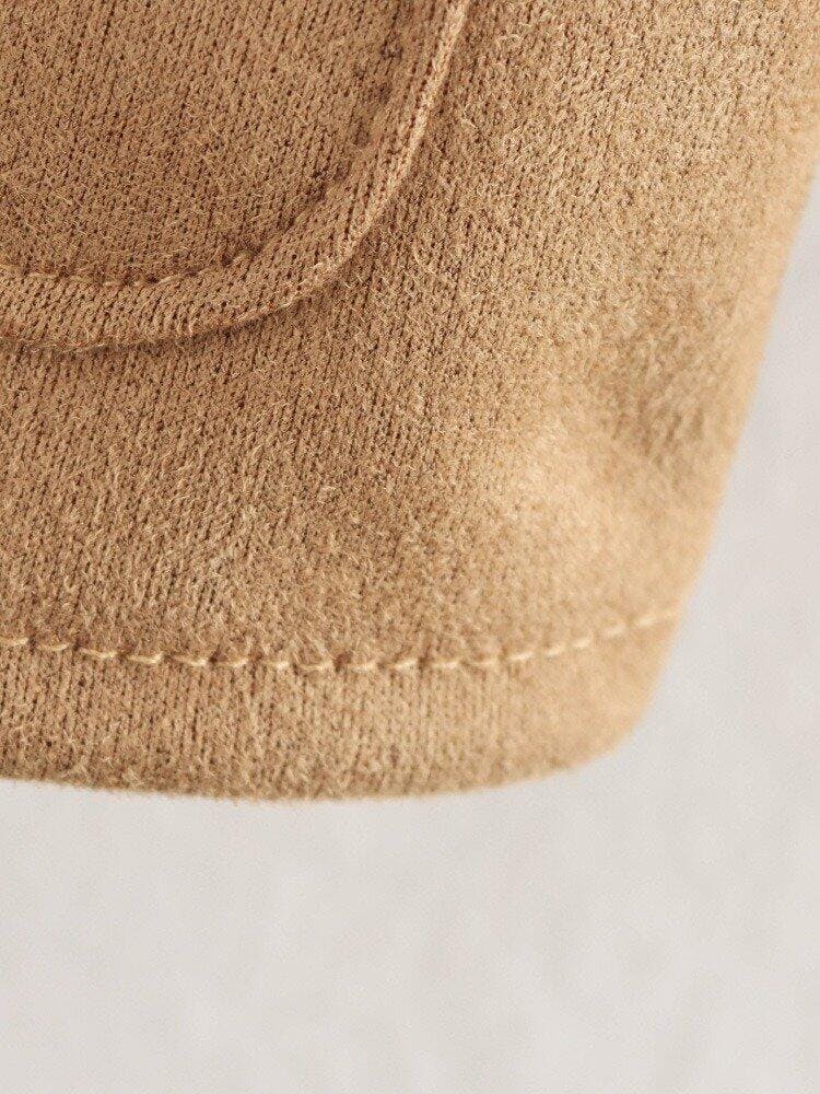 Vyana Collective Women’s Camel Suede Coat with Button Closure-Vyana Collective