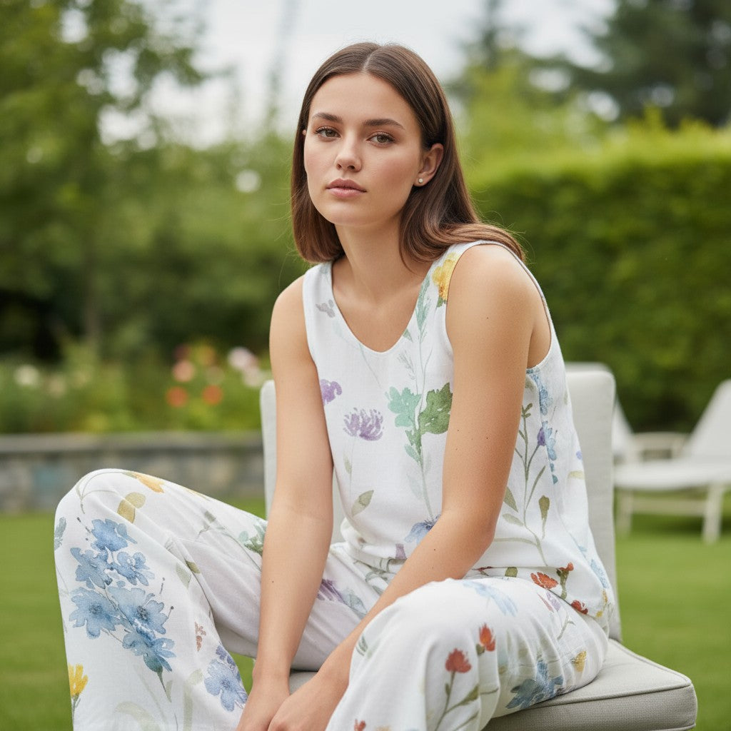 1 × Sleeveless Blouse + 1 × Wide-Leg Pants (matching print — sold individually)