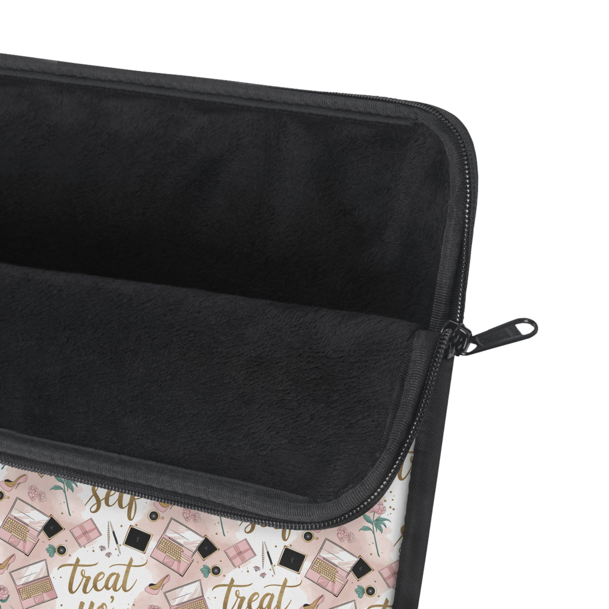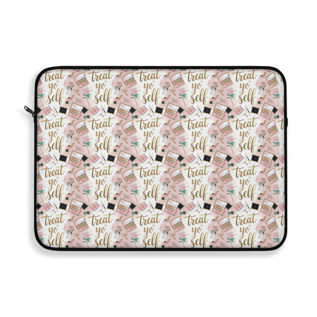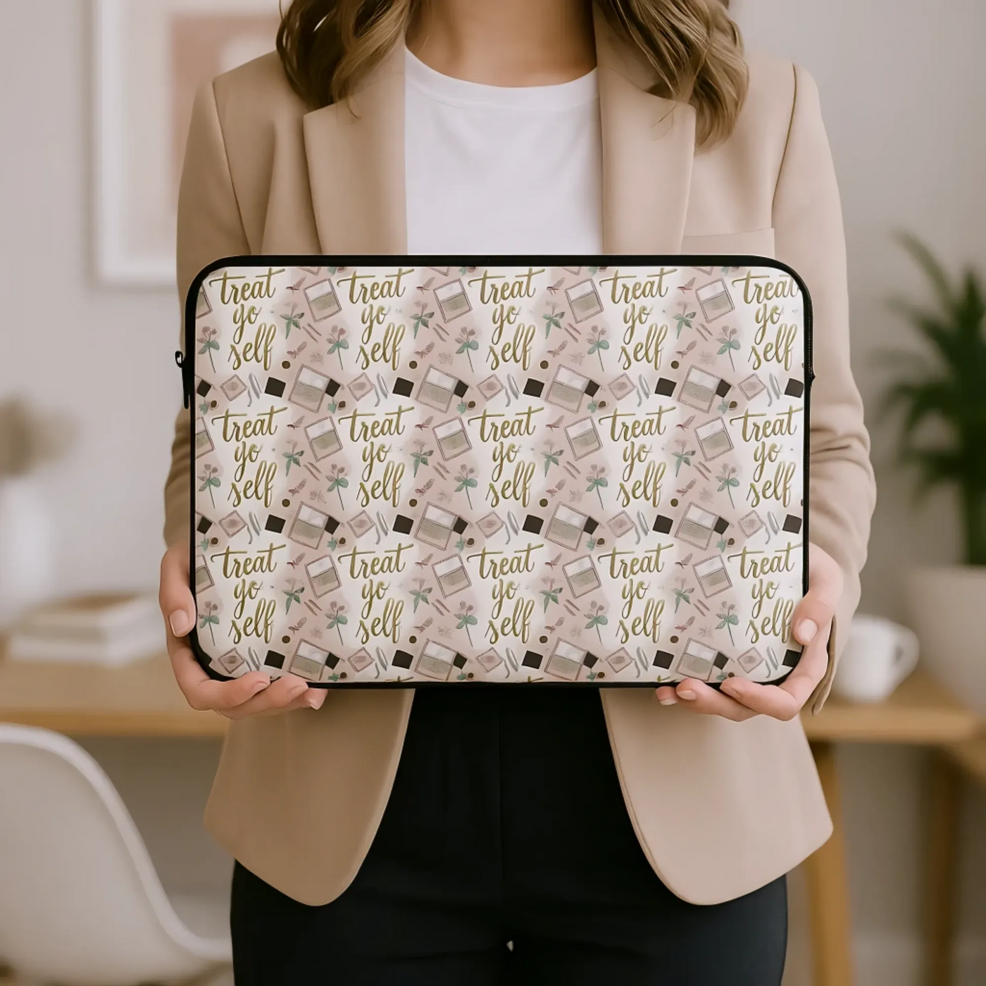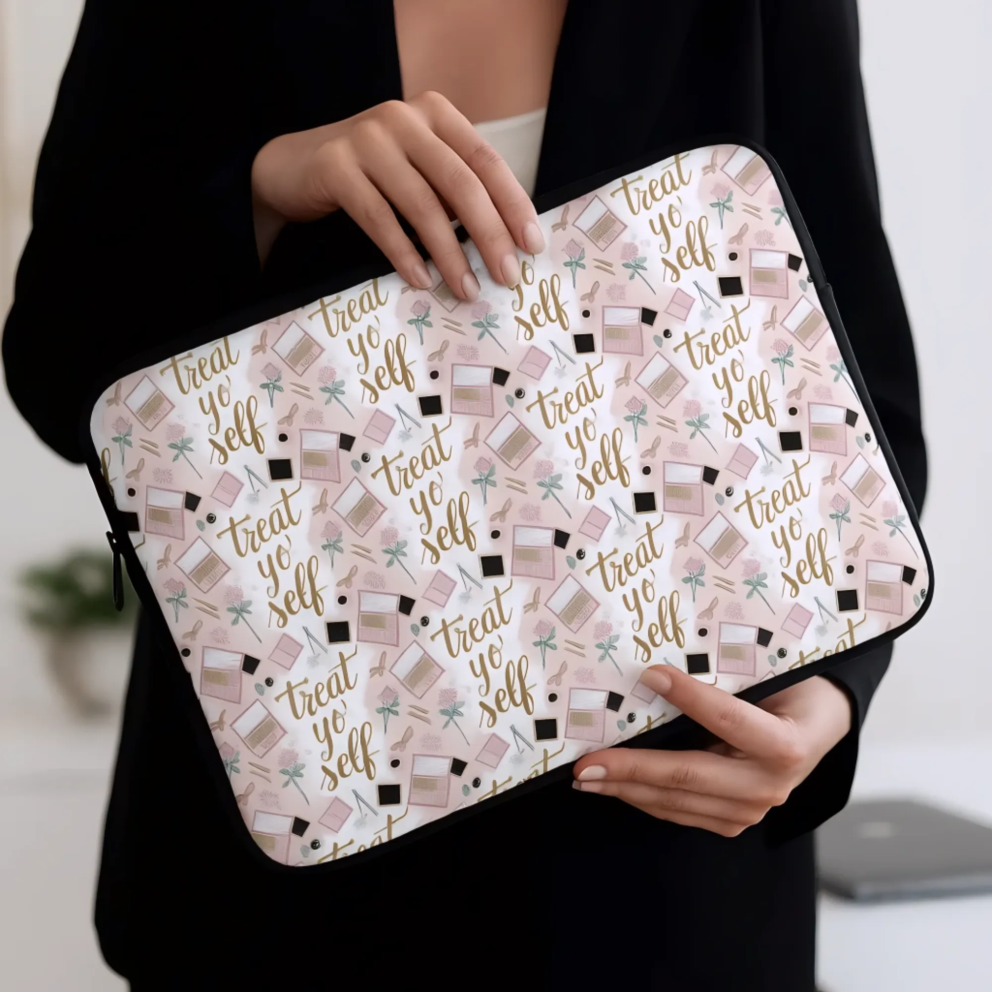 "Treat Yourself" Laptop Sleeve | Stylish Tech Accessory for Work, Pink Aesthetic, Motivational Quote,