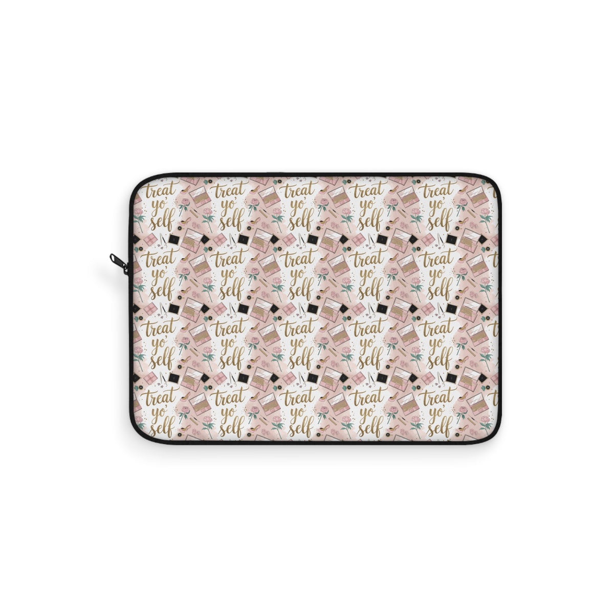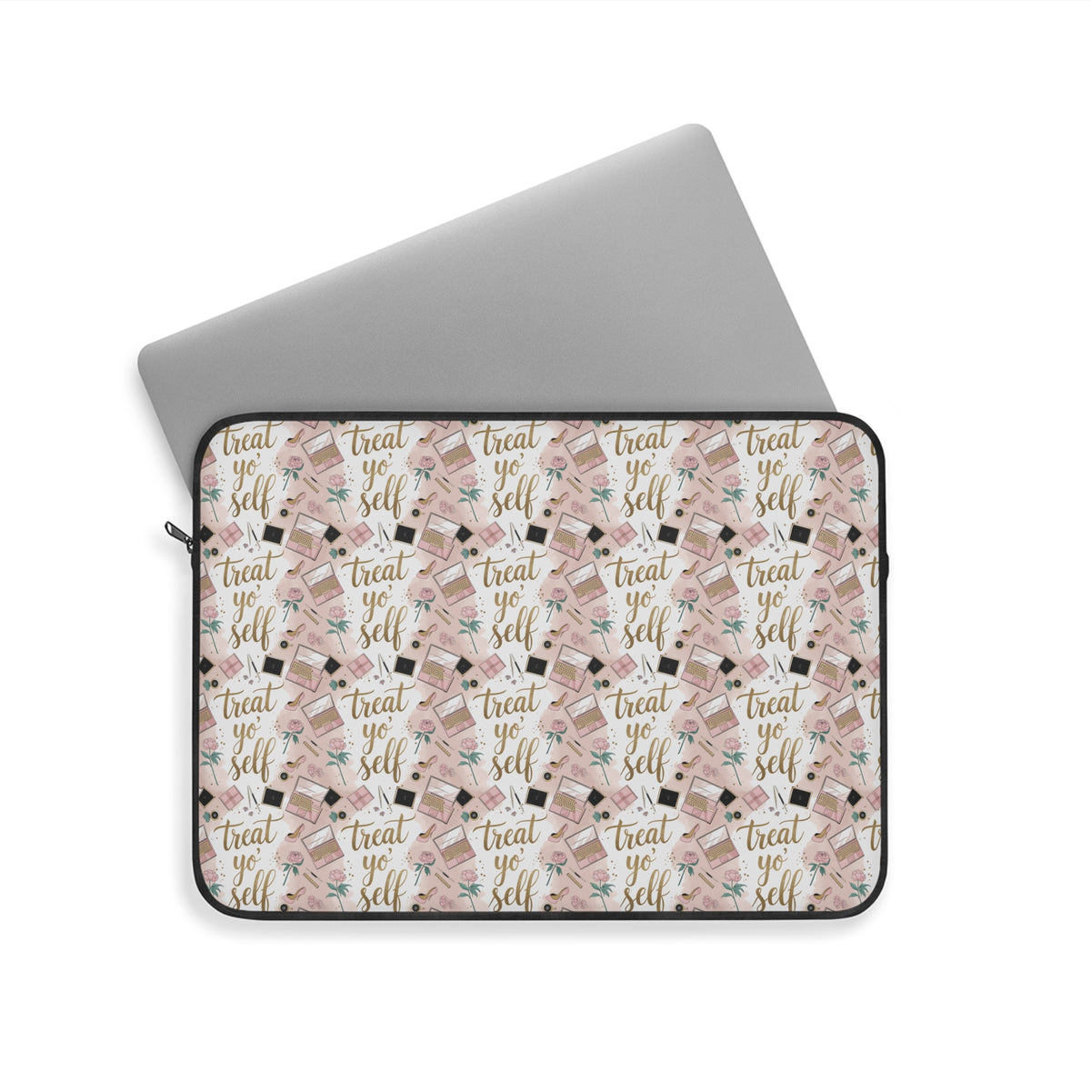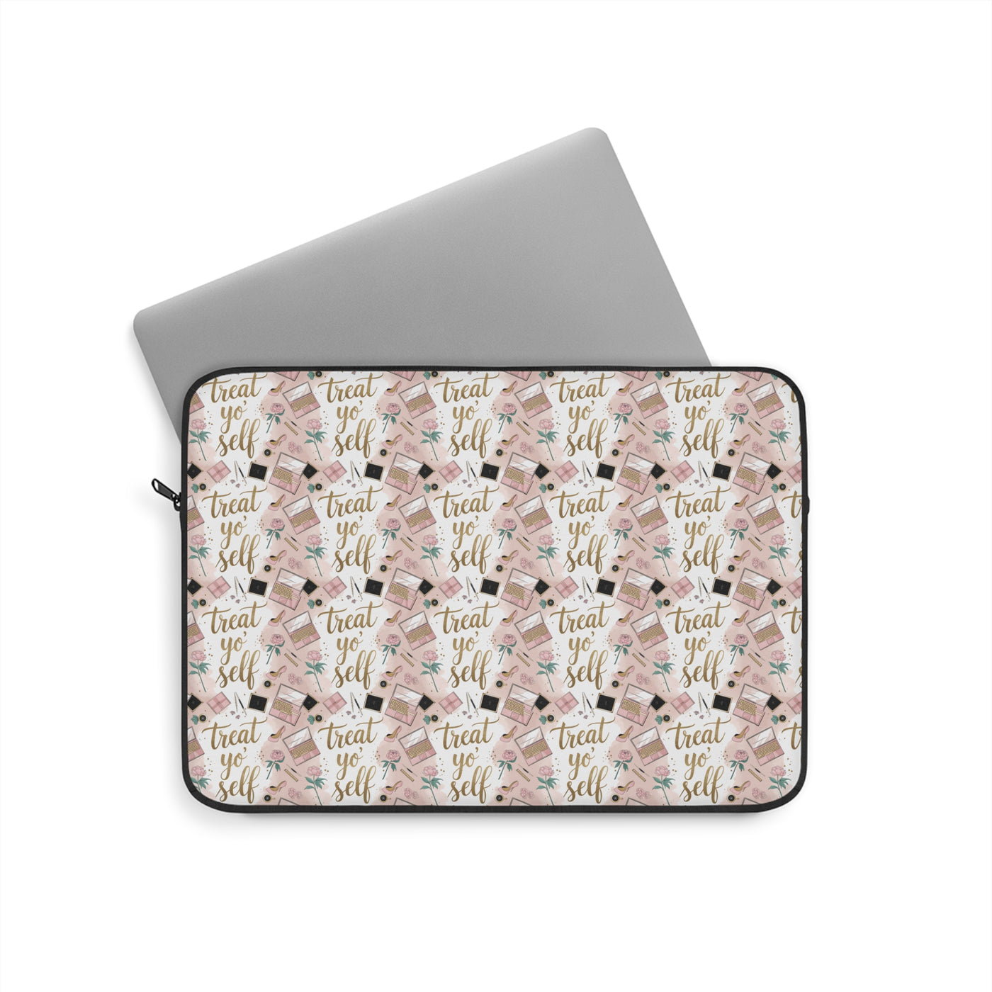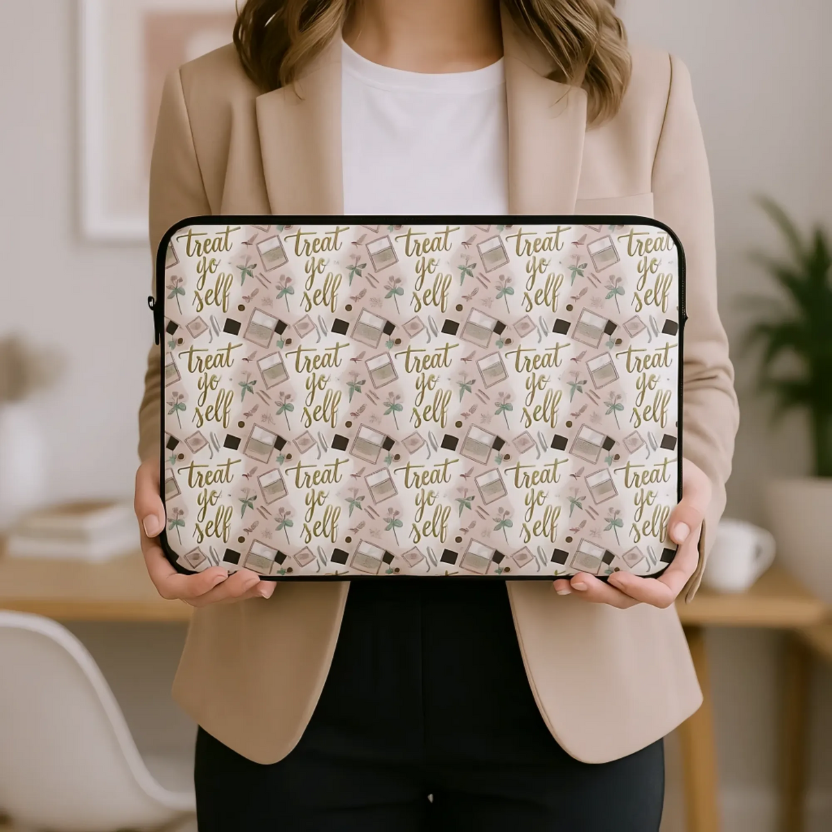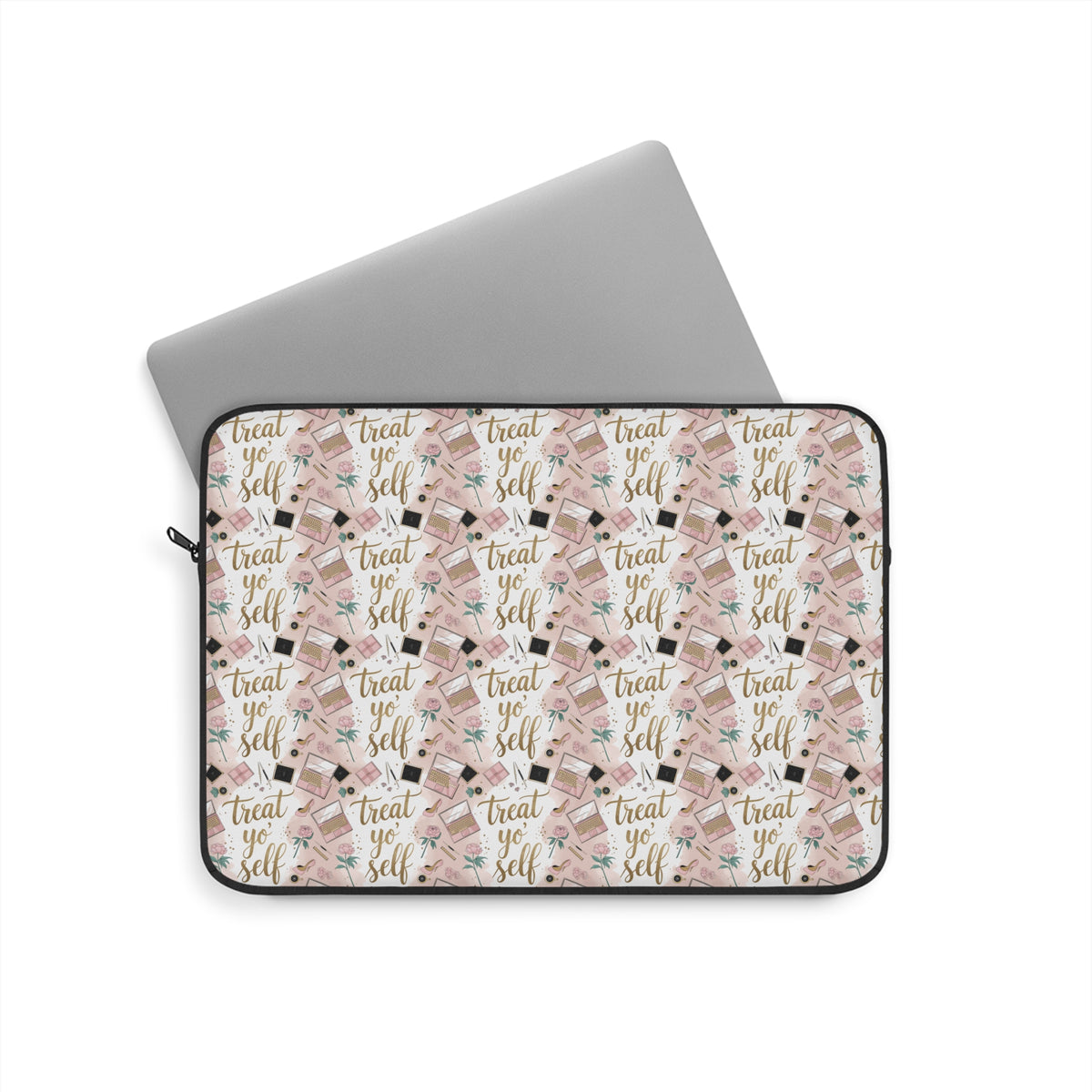 "Treat Yourself" Laptop Sleeve | Stylish Tech Accessory for Work, Pink Aesthetic, Motivational Quote,
