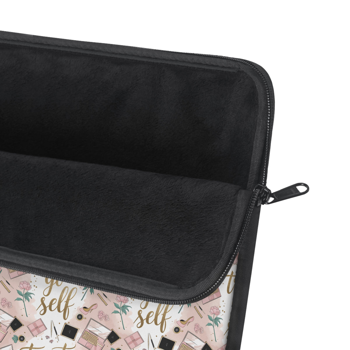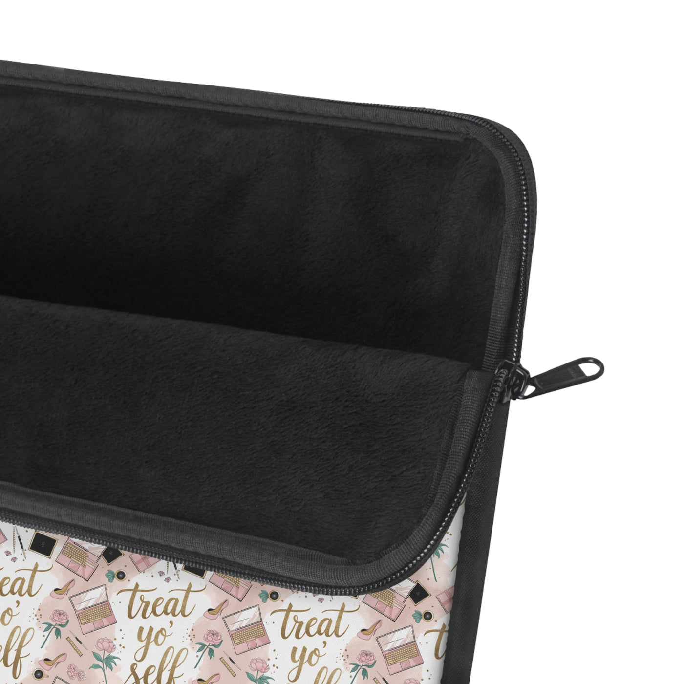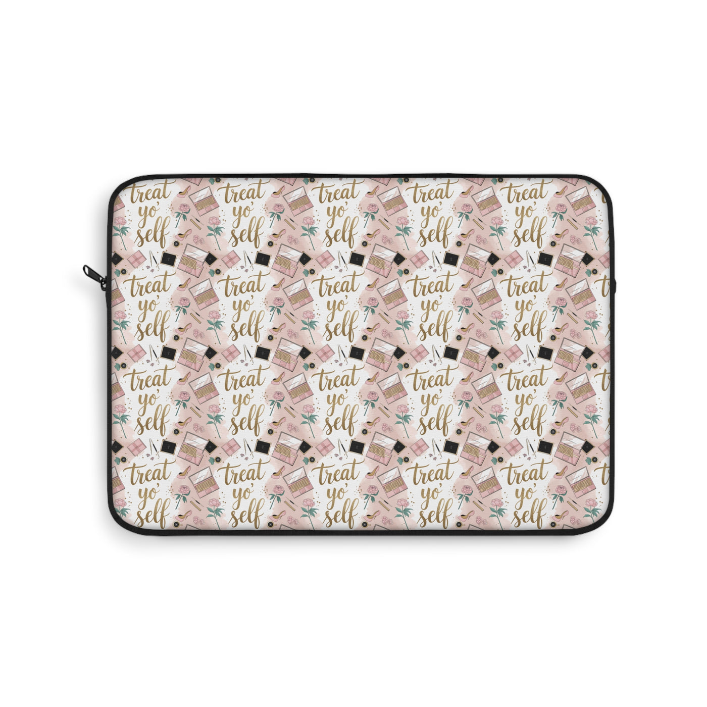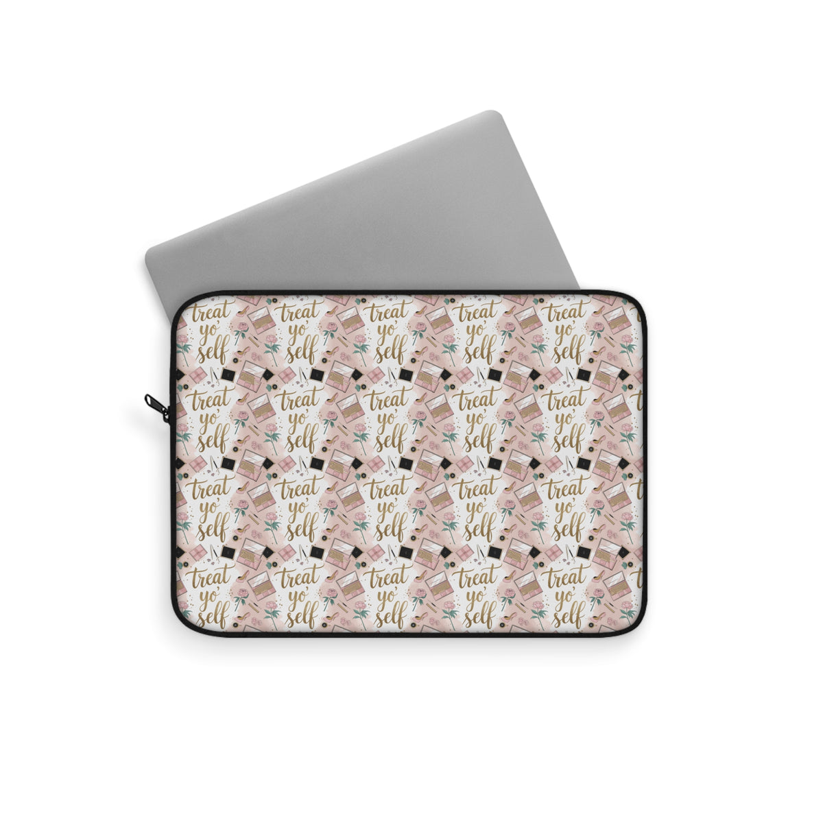 "Treat Yourself" Laptop Sleeve | Stylish Tech Accessory for Work, Pink Aesthetic, Motivational Quote,
