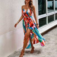 Sleeveless Sling Long Fashion Temperament Dress - Red And Green / L